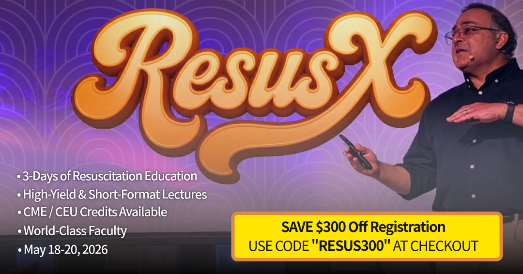 Three action-packed days of hands-on resuscitation training, real-world simulations, and life-saving strategies! And here’s the best part: we’re giving $300 off your ticket! Just use code RESUS300 at checkout.
